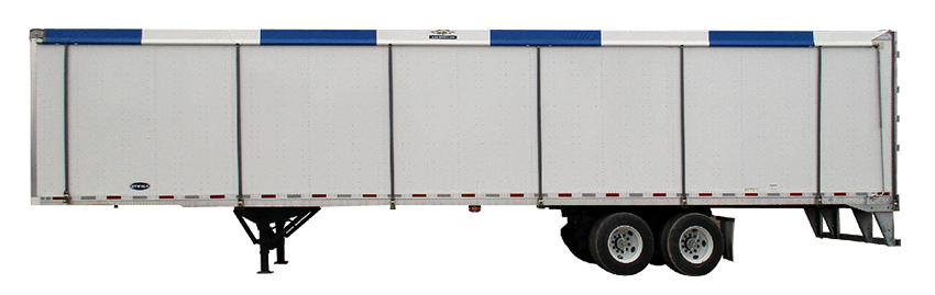 Strick Open Top sheet and post trailers are specifically utilized when cargo must be loaded from the top of the van or from the rear when additional height clearance is required. Strick Open Top trailers may be customized to include numerous tarp systems, colored top tarp options, internal specialty logistical arrangements, interior flooring options, and much more.